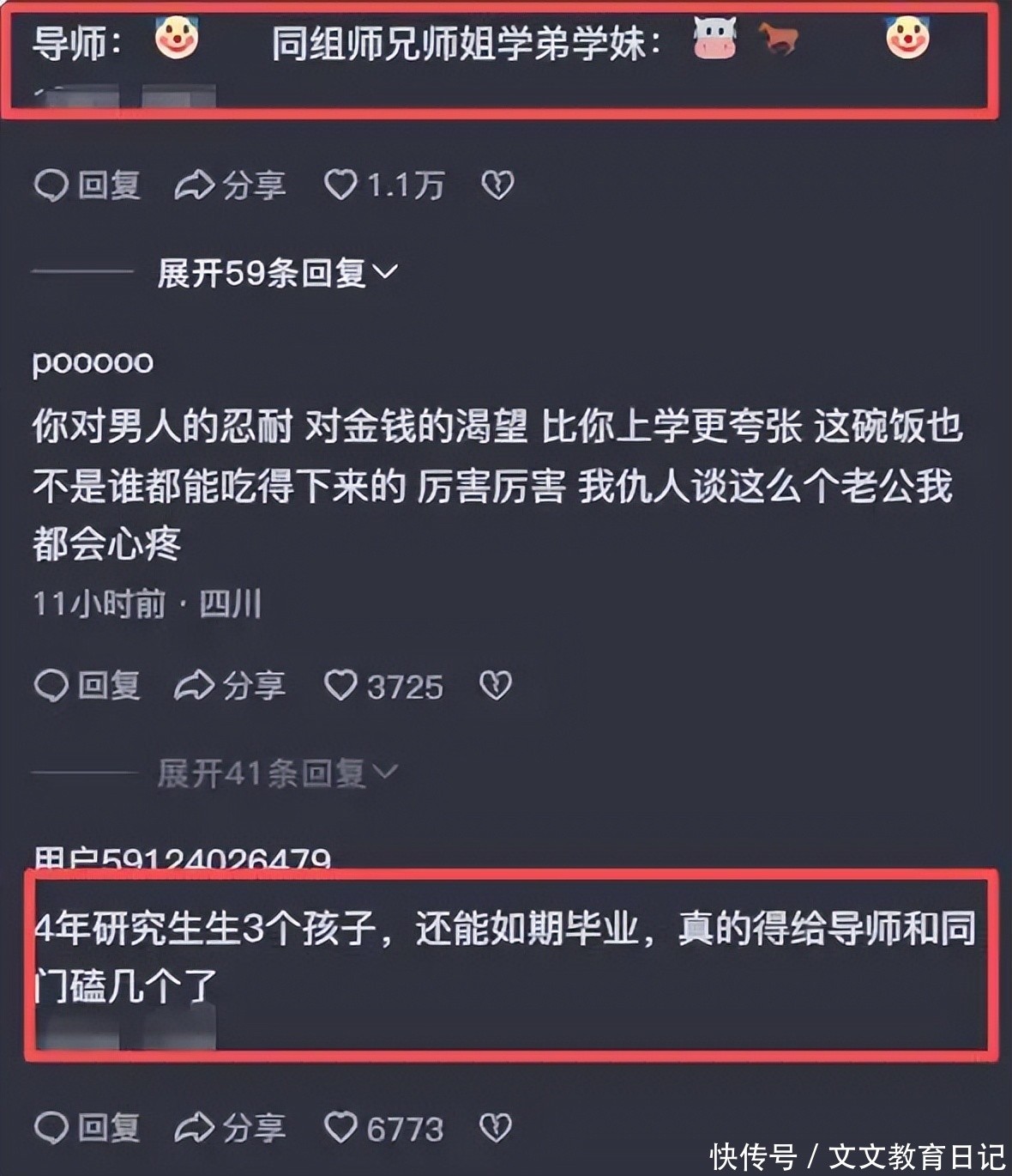 女生自己读书生孩子,家庭事业双丰收。结果同门们熬成黑眼圈,恨自己为什么不能马上也怀个孕,生个娃。